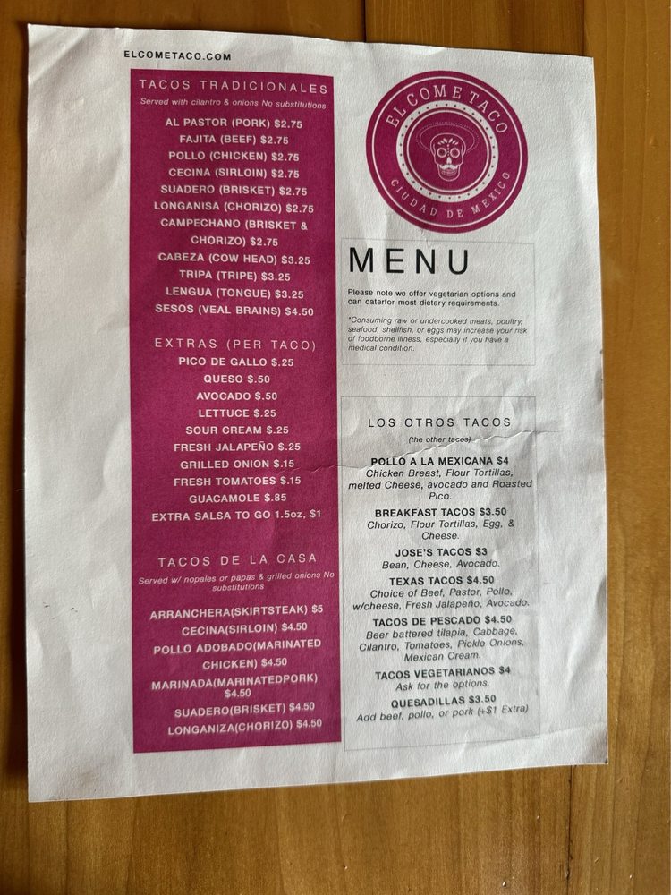 El Come Taco is a Mexican restaurant located in Dallas, TX, offering a variety of traditional and house specialty tacos. The menu features appetizers like guacamole, chips & salsa, and street corn, as well as a selection of flavorful tacos including pastor, fajita, and pollo. Their house tacos, such as arranchera and pollo adobado, are served with grilled nopales or papas and onions for a unique twist. The restaurant also caters to different dietary preferences with vegan and limited vegetarian options available. El Come Taco provides a casual dining experience with options for delivery and takeout, making it convenient for customers. With a range of offerings, from appetizers to tacos, this establishment is a great choice for lunch, dinner, or even catering for groups. Get ready to indulge in tasty Mexican flavors at El Come Taco!
