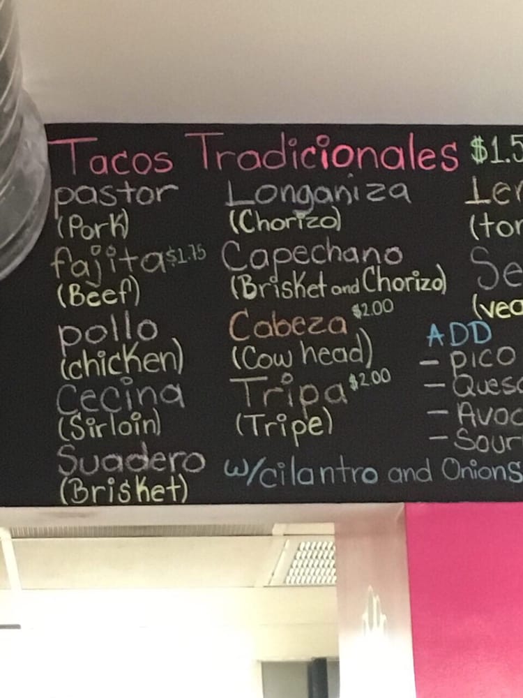 Choice of pastor, chorizo, pollo, beef with cilantro and onions.